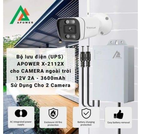 DỰ PHÒNG AN TOÀN: Bộ lưu điện APOWER X-2112X 12V 2A, pin 3600mAh, duy trì hoạt động liên tục đến 7 giờ cho 2 camera.