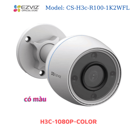 Camera Wifi Ezviz 2MP CS H3C Color, đèn flash cảnh báo, cảm biến Panasonic 1/2.7”, góc rộng 112°, hồng ngoại 20m, IP67, hình ảnh ban đêm có màu, chống ngược sáng, lý tưởng cho bảo vệ gia đình