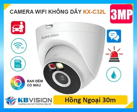 Camera IP không dây Kbvision KX-C32L 3.0MP ánh sáng kép + IR 30m, phát hiện người / xe, báo động đèn + còi, đàm thoại 2 chiều, ONVIF, tên miền miễn phí – bảo vệ thông minh 24/7