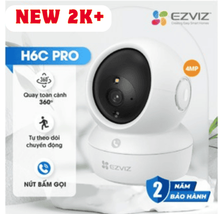 Camera Wifi 4.0 MP Ezviz CS-H6C-Pro là giải pháp hoàn hảo cho camera wifi trong nhà, camera giám sát nội thất, camera pan tilt, camera ban đêm màu, camera Ezviz 4MP. Đó là hình ảnh 4.0MP (rez cao, sắc nét), pan & tilt quay quét 340°/55°, gọi video hai chiều qua App Ezviz, công nghệ nhận diện người & tự động theo dõi, hiển thị màu ban đêm đến ~5 mét, quan sát đêm đến 10 mét, và hỗ trợ thẻ nhớ microSD lên đến 512 GB + Ezviz Cloud.