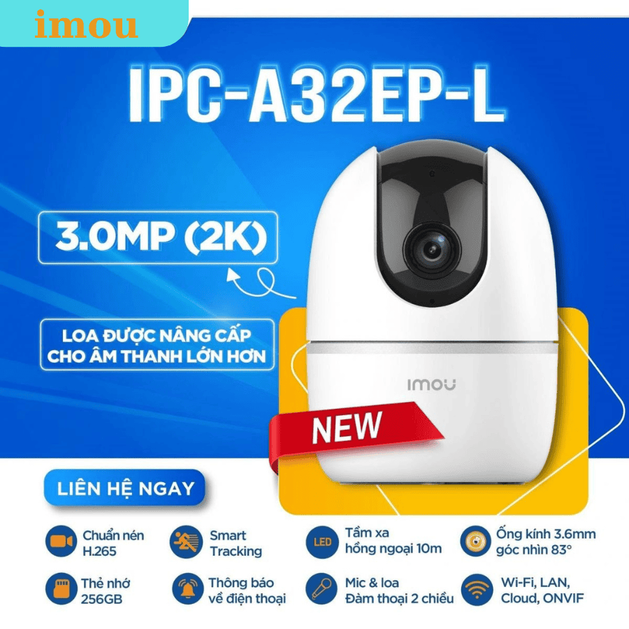 Camera WiFi Imou IPC-A32EP-L (Ranger 2 / A1 2K) là giải pháp hoàn hảo cho camera wifi quay quét, camera Imou 3MP, Imou Ranger 2, camera trong nhà pan tilt, camera gọi app Imou, camera phát hiện người, camera nhà thông minh, indoor pan tilt camera, smart home camera, IP camera Imou, camera giám sát nội thất, camera tracking, camera night vision, camera wifi Imou, camera 360 độ trong nhà.